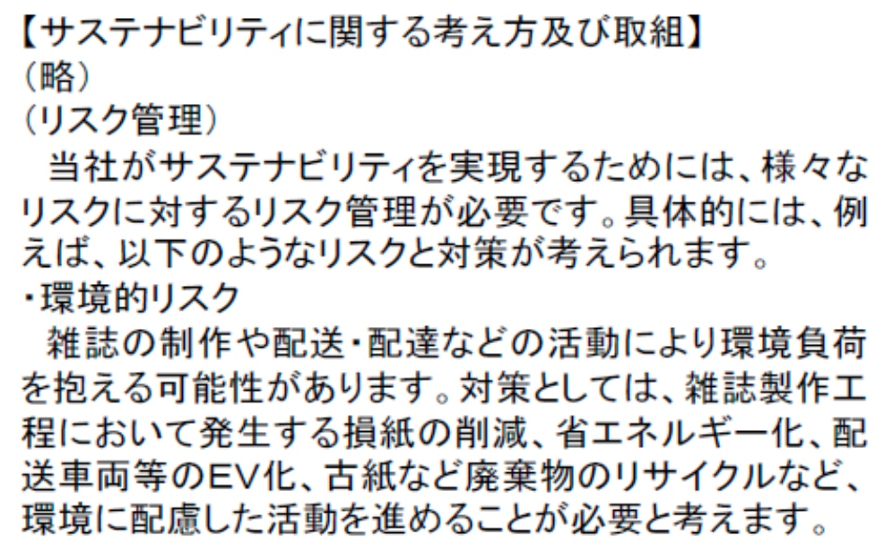 課題:サステナビリティ関連のガバナンスに関する記載がない又は不明瞭 事例:![]() |
