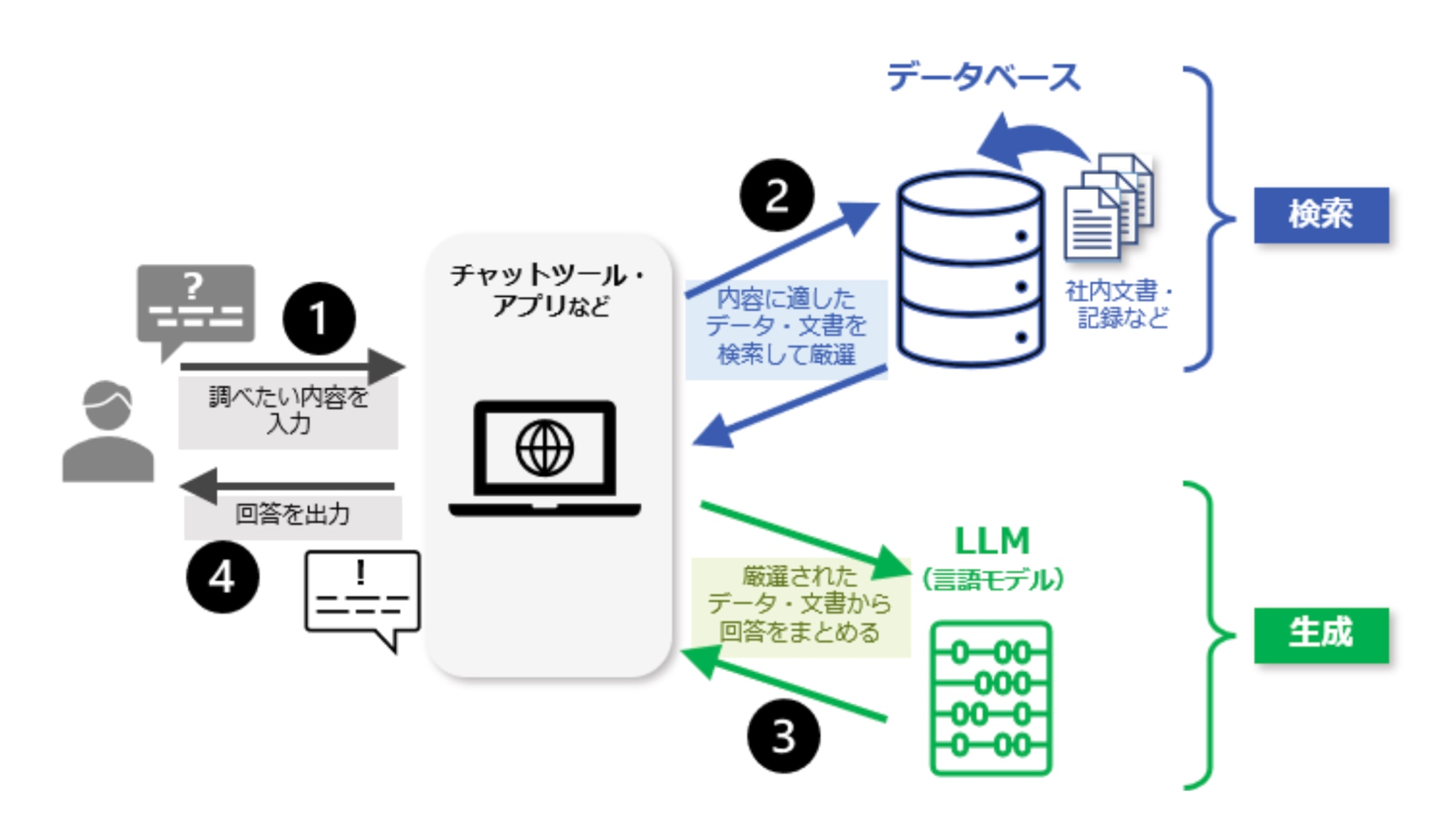 また、従来の生成AI、特にChatGPTのような大規模言語モデル(LLM)は、不確かな情報を生成するハルシネーション(AIが事実に基づかない情報を生成する現象)の問題が指摘されてきました。この解決策として注目されるのが、外部の知識ソースを活用するRAG(検索拡張生成;Retrieval-Augmented Generation)という仕組みです。