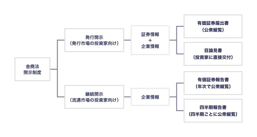 直接金融における投資家保護と市場の健全性確保のため、資金調達者である発行者を規制対象とし、投資家のために、発行する有価証券に関する情報(証券情報)や発行者に関する情報(企業情報)を適切に開示する義務を課する規制が開示規制である。投資家保護のための開示規制は主として金商法により行われるが、金商法における開示制度を金商法開示制度という。金商法開示制度には、(1)有価証券を発行する際の開示制度である発行開示制度と、(2)上場会社等が行う継続的な開示制度である継続開示制度の2つが存在する。【図5-1】は、発行開示制度と継続開示制度を含む金商法開示制度の全体構造を示したものである。