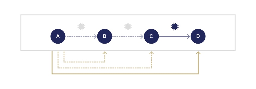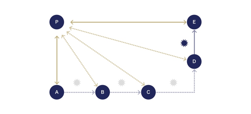 これらの観点を踏まえると、著作権者AがプラットフォーマーPに対し、購入者に都度サブライセンスする権利を含むNFTアートの利用ライセンスを付与し、プラットフォーマーとB、C、Dと放射状にサブライセンスをする制度設計が、安定的かつ実効的なNFTプラットフォームを形成する1つの方法であると考えられます 4。