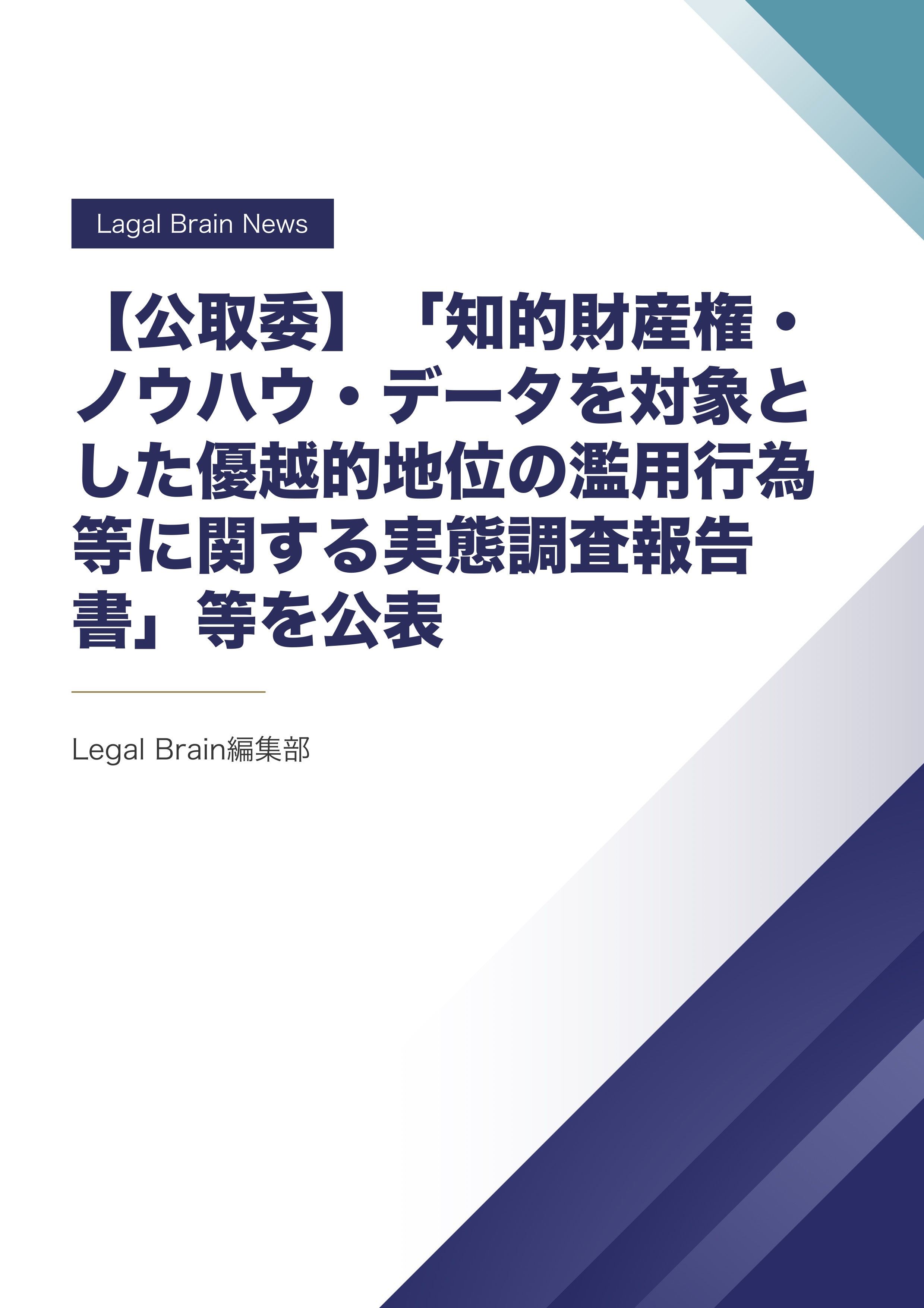 公正取引委員会は、令和8年2月27日、「知的財産権・ノウハウ・データを対象とした優越的地位の濫用等に関する実態調査報告書(案)」及び「知的財産取引適正化ワーキンググループ報告書(案)」を公表した。過去の調査対象を91業種へ拡大し、産業データの不当な提供要請や著作権の無償譲渡、名ばかり共同研究等の問題事例が浮き彫りとなった。本記事では、独占禁止法や取適法(旧下請法)等のリスク、適切な対価設定のあり方など、法務担当者が押さえるべき実務上のポイントを解説する。