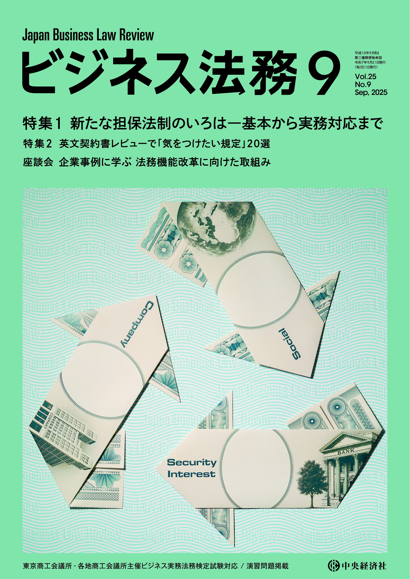 【特集1】下請法実務の勘所と改正法の要点【特集2】こんなときどうする? 「詐称・虚偽・想定違い」の現場対応【地平線】いま,問われる専門家の職業倫理/若狭勝【座談会】コーポレートガバナンスの現場から見る理想と課題(下)~不祥事対応の要点とガバナンス支援体制の強化~【新連載】言語学の観点からみる商標実務【実務解説】・「譲渡担保契約及び所有権留保契約に関する法律案」の概要 ・「公益通報者保護法の一部を改正する法律案」の概要【特別収録】ビジネス実務法務検定試験(R) 3級模擬試験問題