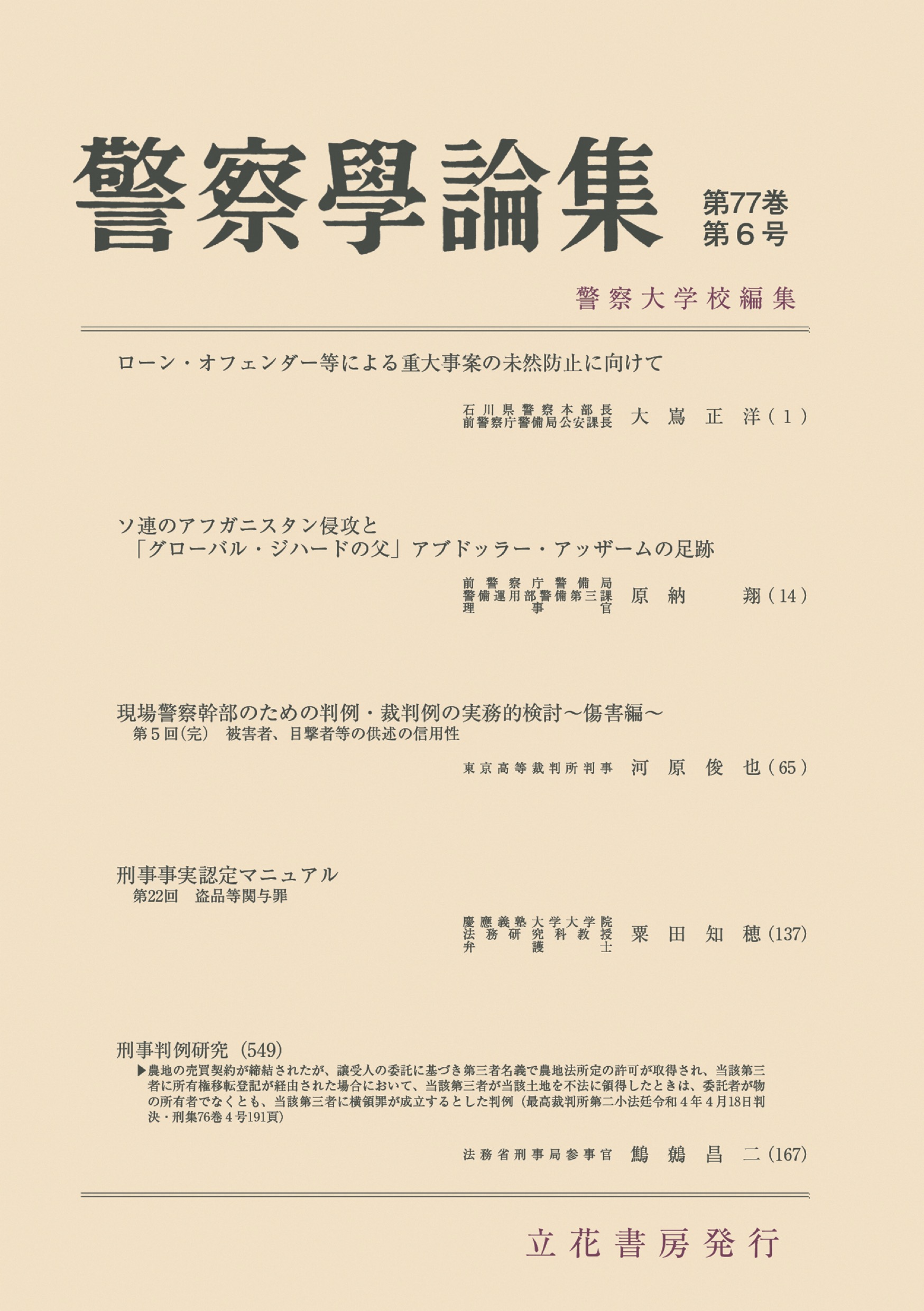 法執行機関の現場で役立つ情報や最新の法令や政策に関する知見を提供する、警察の実務や政策に関する論考「警察学論集」。警察庁や都道府県警の実務家、法曹や研究者による論文や解説を掲載。特定のテロ組織等と関わりなく、過激化して、国の公安又は利益に関わるようなテロ等の重大事案を起こすおそれのある「ローン・オフェンダー」への対策について、これまでの経緯・新たな業務モデルの考え方を解説。