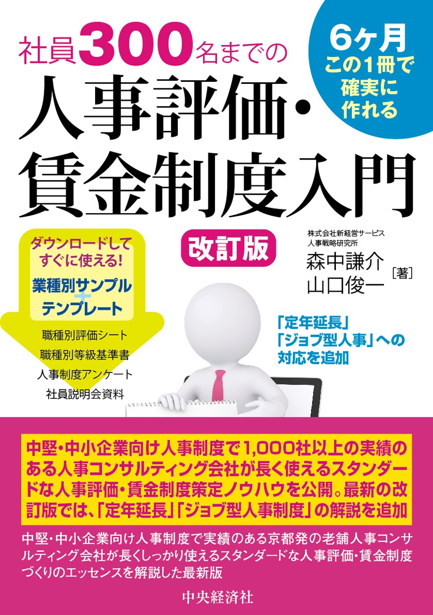 小規模企業の人事制度で一番難しい「評価制度」について、評価シートの具体例と使い方を業種別・職種別に紹介。ジョブ型人事制についても詳述した人事制度設計のバイブル。
