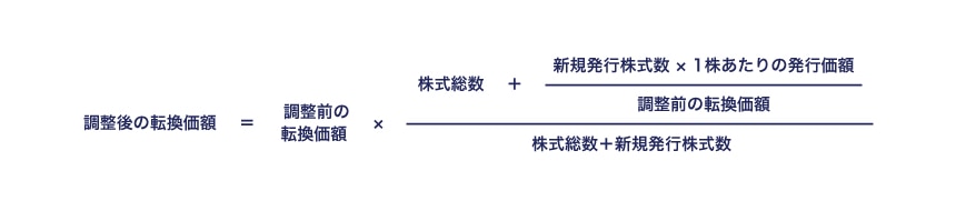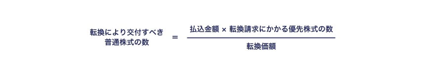 具体的には、株式分割、株式併合または株式の無償割当てが行われた場合や、当該優先株式の払込金額より低額な価額での株式の発行が行われた場合(いわゆるダウンラウンドの場合)などに、調整が行われることになります。
