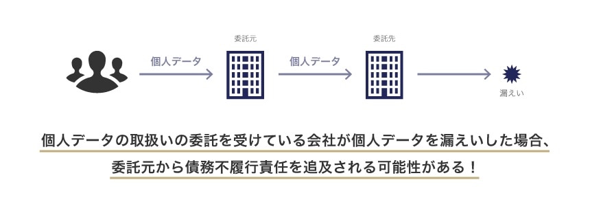 さらに、個人データの取扱いの委託を受けている会社(例えばITサービスのベンダ)が、委託を受けて預かっている個人データを漏えいしてしまえば、委託元から債務不履行責任を追及される可能性があります。