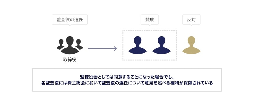 監査役には、株主総会において監査役の選任について意見を述べる権利(意見陳述権)が保障されています(会社法345条1項・4項)。監査役にこのような権利が保障されているのは、監査役の選任議案に関する取締役会の決定に、監査役の意向をより強く反映させることが目的です。