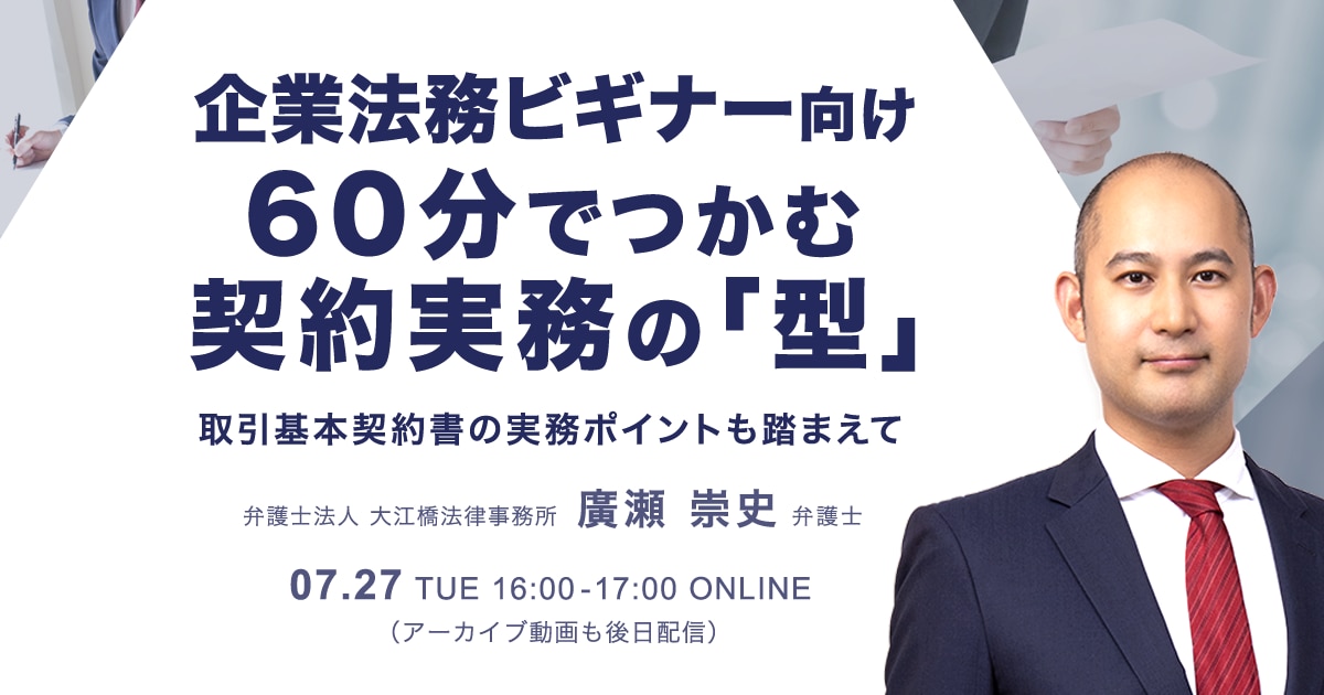 \企業法務ビギナー向け/60分でつかむ契約実務の「型」 - 取引基本契約書の実務ポイントも踏まえて - |