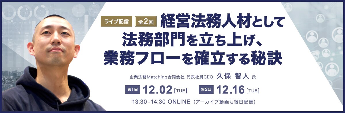 【ライブ配信】全2回 経営法務人材として法務部門を立ち上げ、業務フローを確立する秘訣