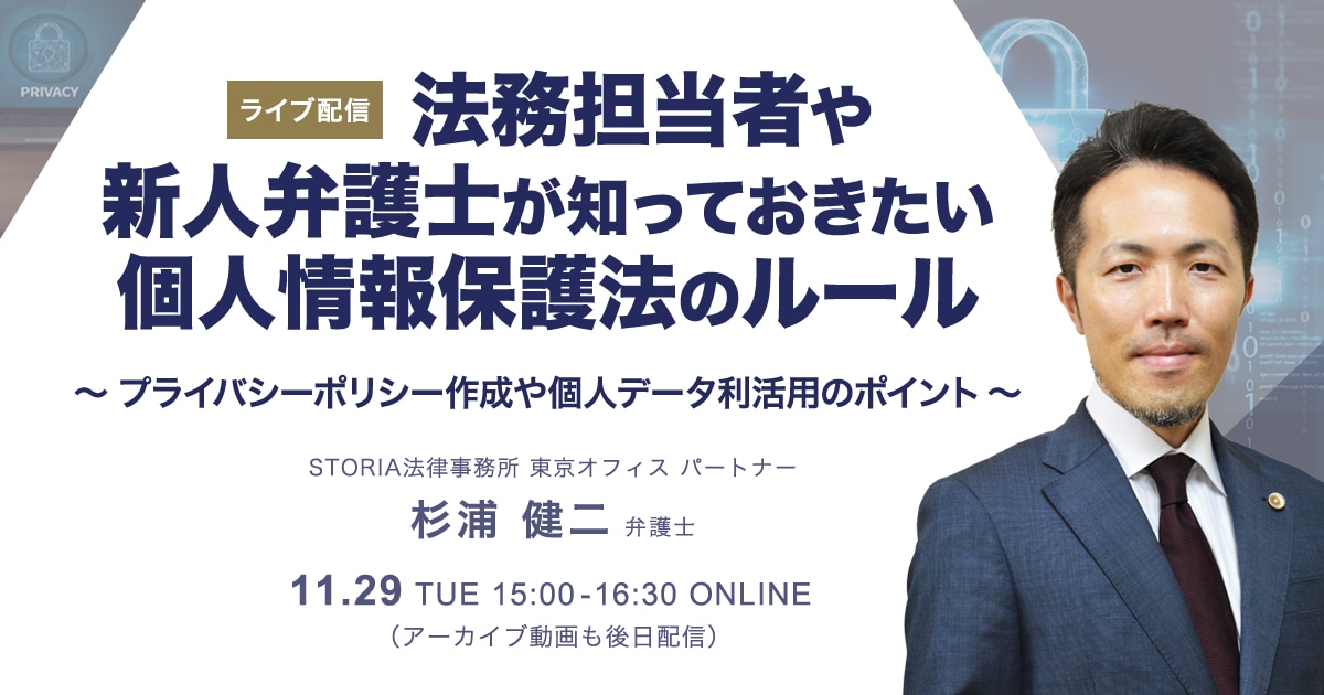 セミナー名 | 【ライブ配信】 法務担当者や新人弁護士が知っておきたい個人情報保護法のルール ~プライバシーポリシー作成や個人データ利活用のポイント~ |