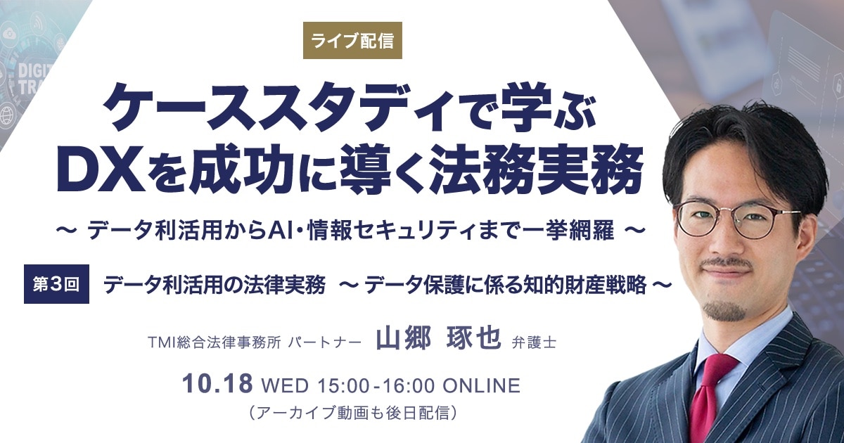 【ライブ配信】ケーススタディで学ぶDXを成功に導く法務実務 第3回 データ利活用の法律実務 ~データ保護に係る知的財産戦略~