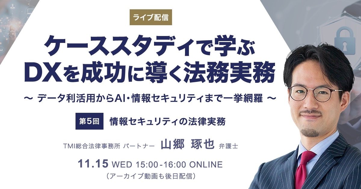 【ライブ配信】ケーススタディで学ぶDXを成功に導く法務実務 第5回 情報セキュリティの法律実務
