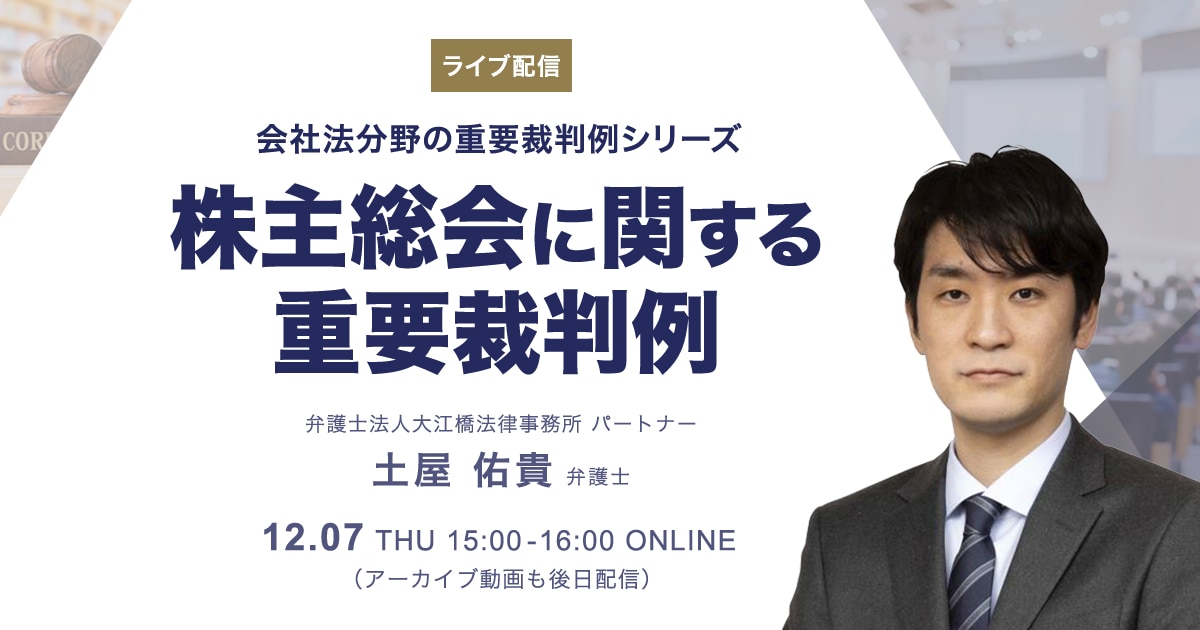 【ライブ配信】会社法分野の重要裁判例シリーズ 株主総会に関する重要裁判例