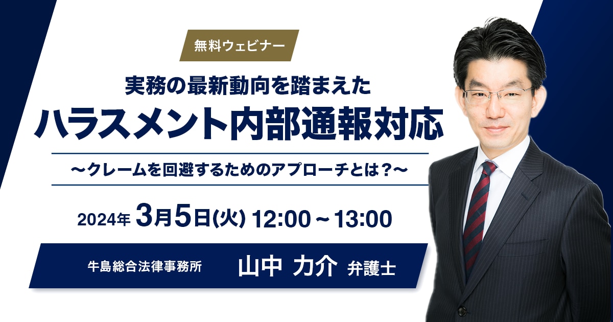 【無料ウェビナー】 実務の最新動向を踏まえたハラスメント内部通報対応 〜クレームを回避するためのアプローチとは?〜 |