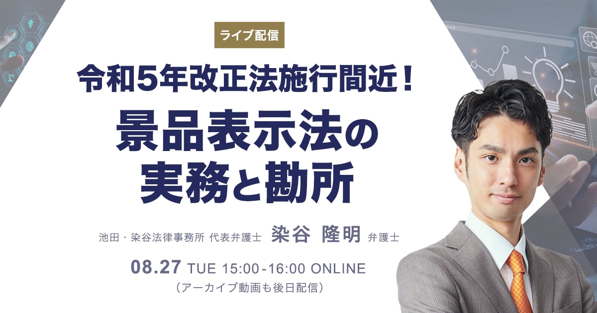 【ライブ配信】 令和5年改正法施行間近!景品表示法の実務と勘所