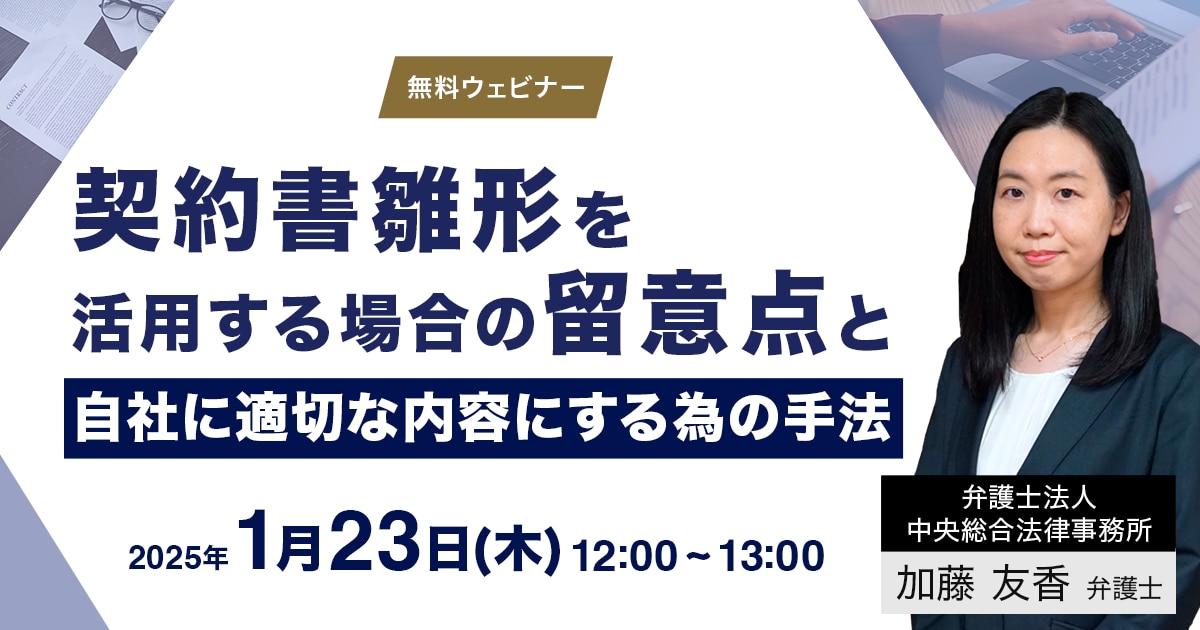 【無料ウェビナー】契約書雛形を活用する場合の留意点と自社に適切な内容にする為の手法