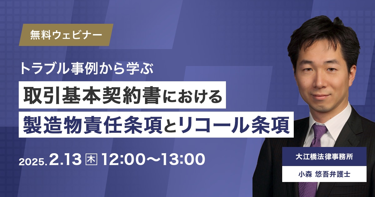 【無料ウェビナー】トラブル事例から学ぶ取引基本契約書における製造物責任条項とリコール条項