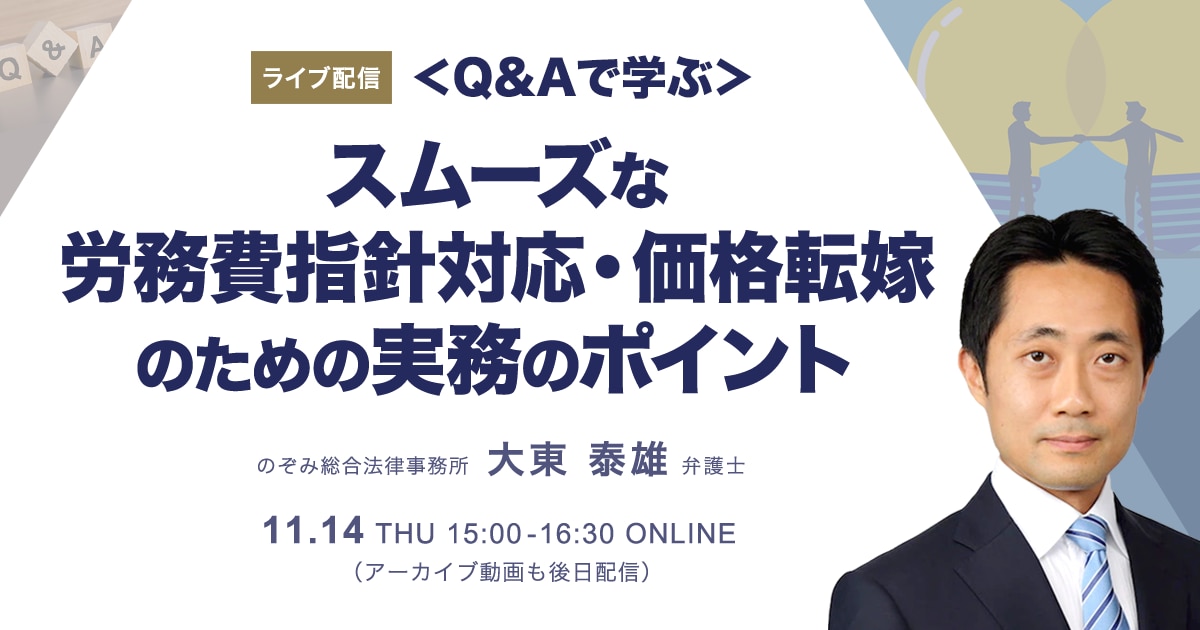 【ライブ配信】<Q&Aで学ぶ> スムーズな労務費指針対応・価格転嫁のための実務のポイント