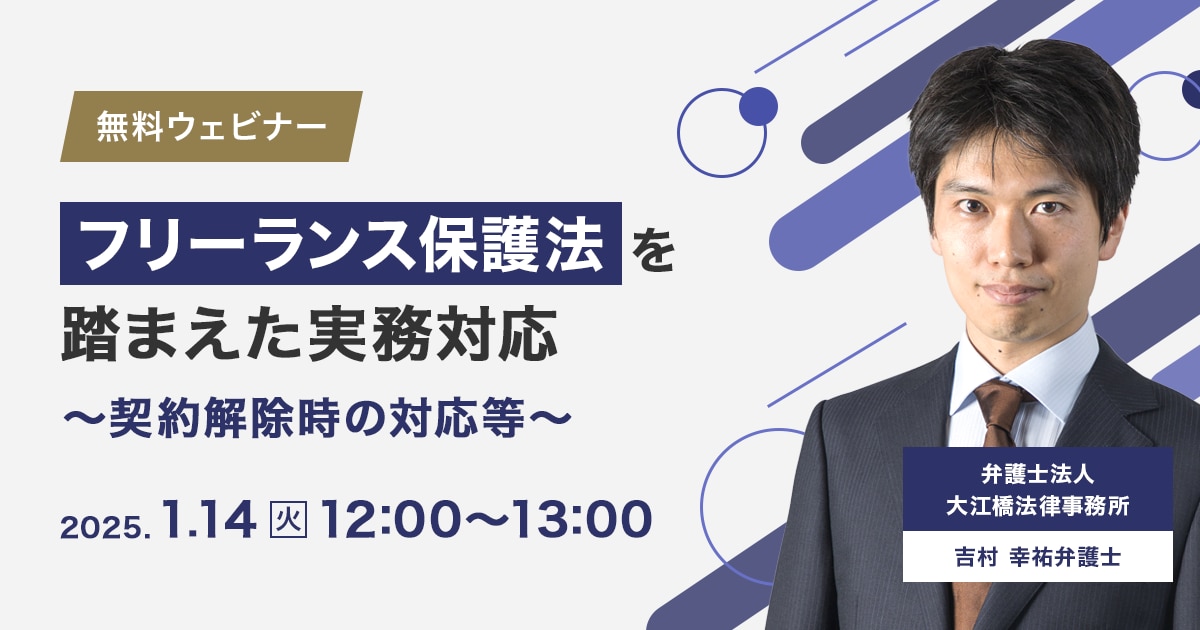 【無料ウェビナー】フリーランス保護法を踏まえた実務対応 〜契約解除時の対応等〜