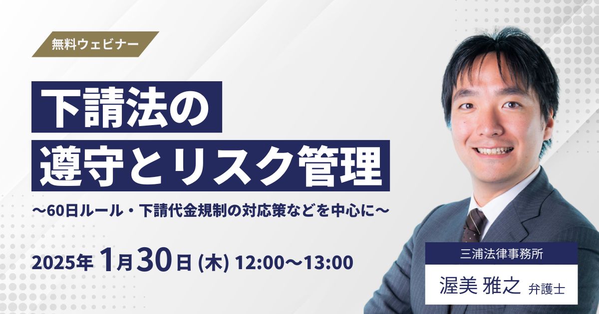 【無料ウェビナー】下請法の遵守とリスク管理〜60日ルール・下請代金規制の対応策などを中心に〜