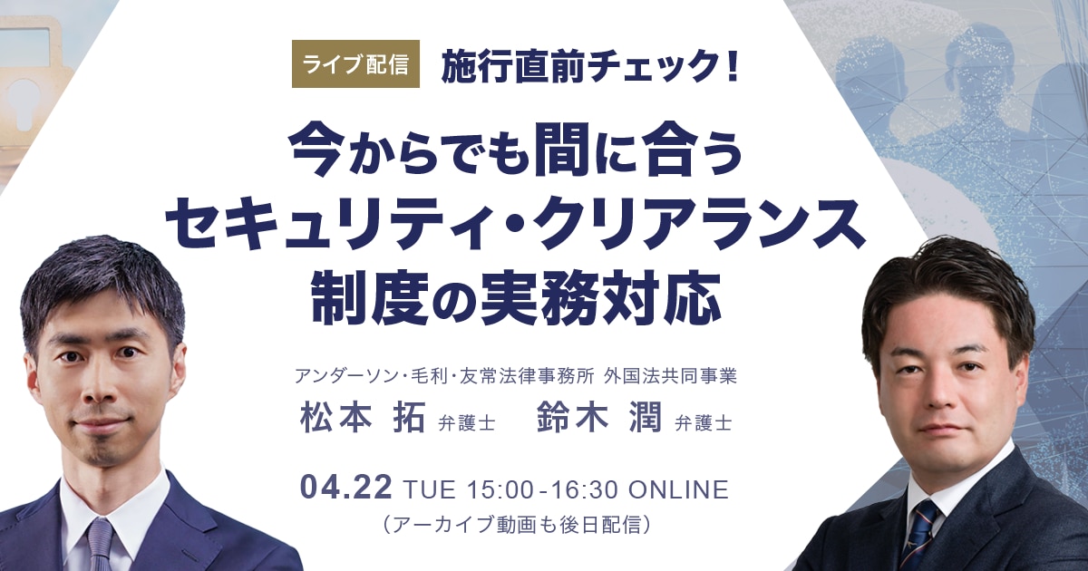【ライブ配信】施行直前チェック!今からでも間に合うセキュリティ・クリアランス制度の実務対応