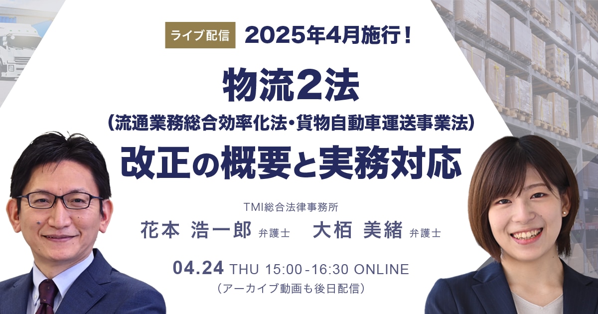 【ライブ配信】2025年4月施行! 物流2法(流通業務総合効率化法・貨物自動車運送事業法)改正の概要と実務対応