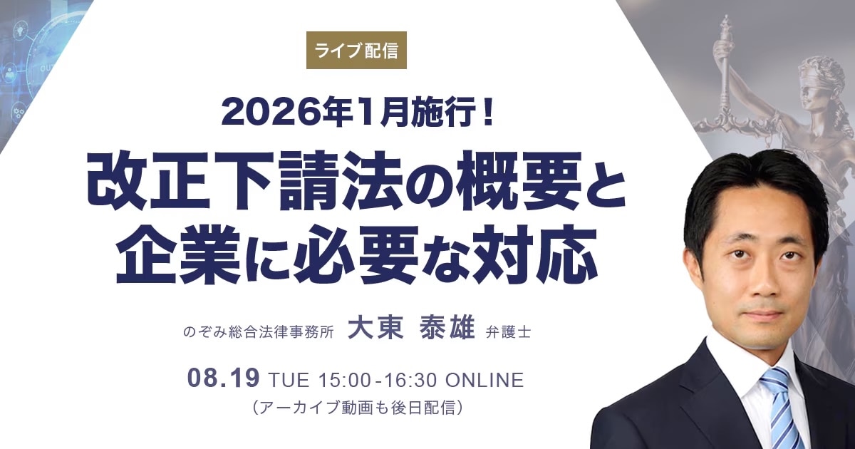 【ライブ配信】2026年1月施行!改正下請法の概要と企業に必要な対応