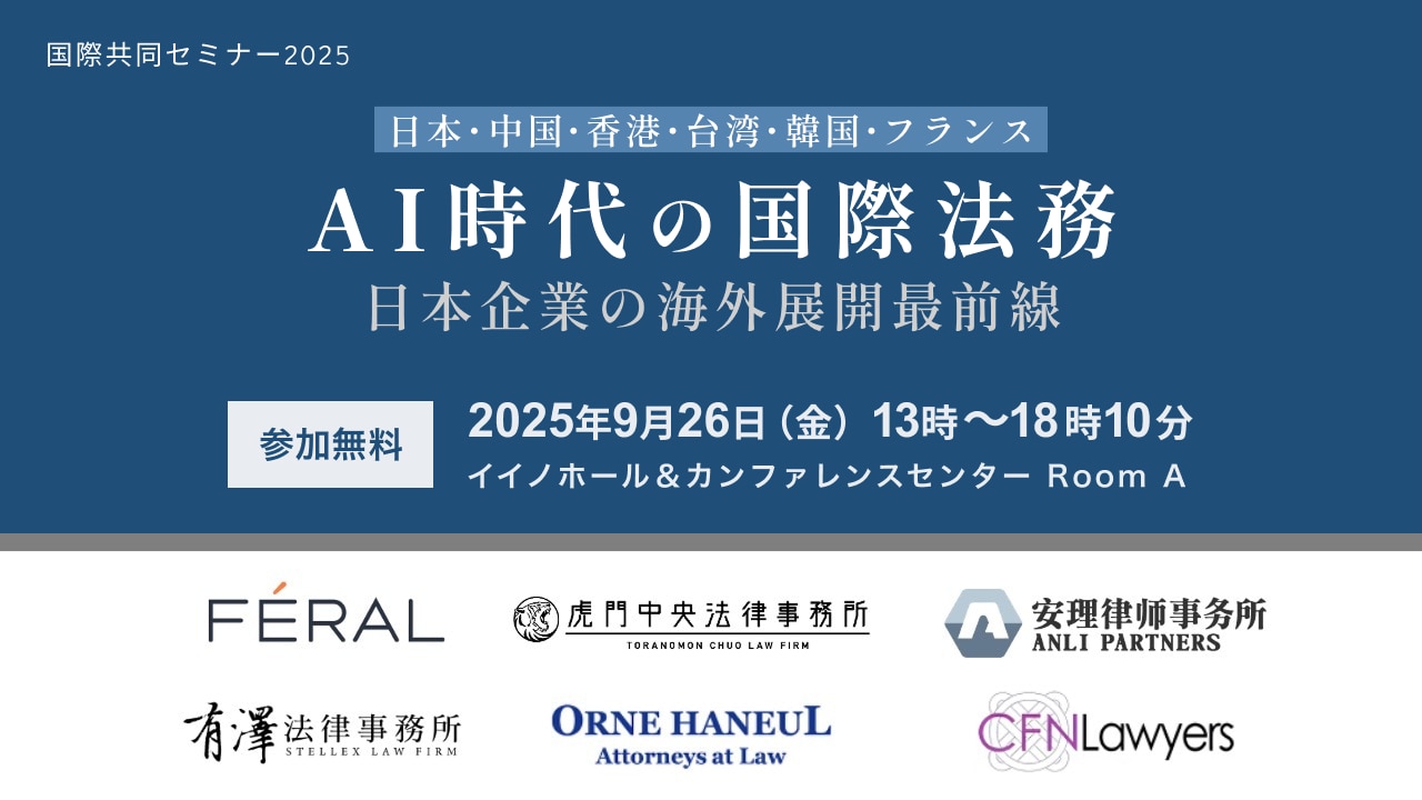 【参加無料】日・中・港・台・韓・仏におけるAI時代の国際法務-日本企業の海外展開最前線-PR