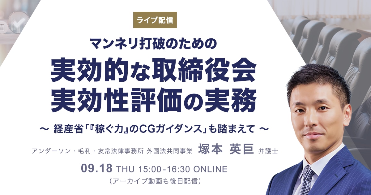 【ライブ配信】マンネリ打破のための実効的な取締役会実効性評価の実務~経産省「『稼ぐ力』のCGガイダンス」も踏まえて~